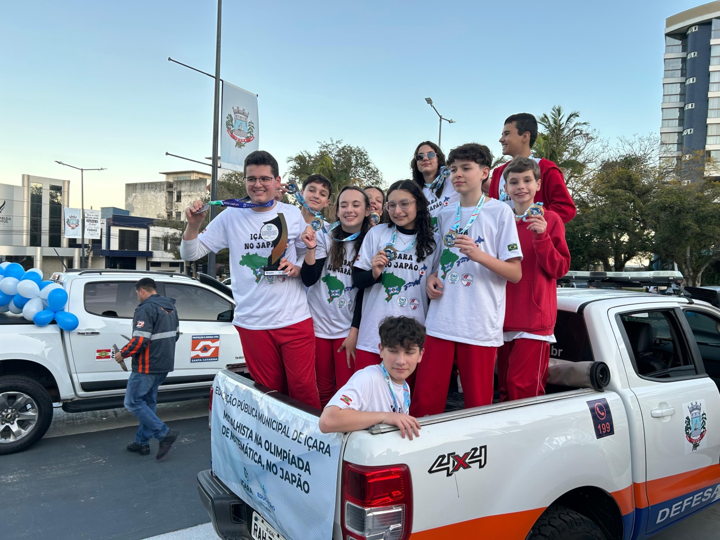 Estudantes içarenses que brilharam no Japão são ovacionados em carreata pela cidade