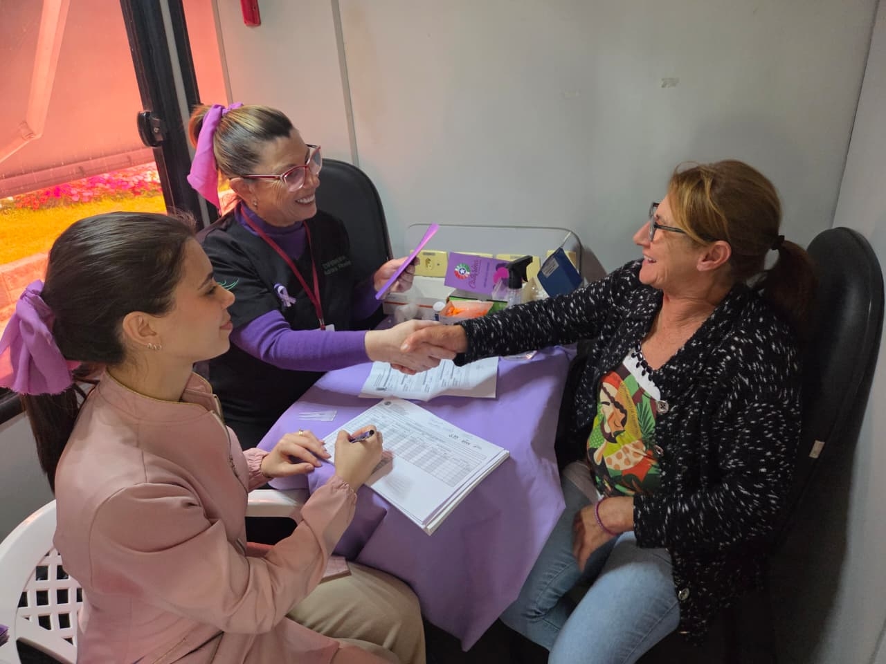A moradora do Rio Salto, Valéria Citadin, foi uma das participantes da ação e aproveitou os serviços oferecidos com o Ônibus Lilás. "Fiquei surpresa ao encontrar esse ônibus diferente e com um agito em volta. Cheguei mais perto para ver o que era e já fiquei por aqui. Fiz os exames que precisava, tomei café e recebi orientações. Elas foram maravilhosas comigo", disse.