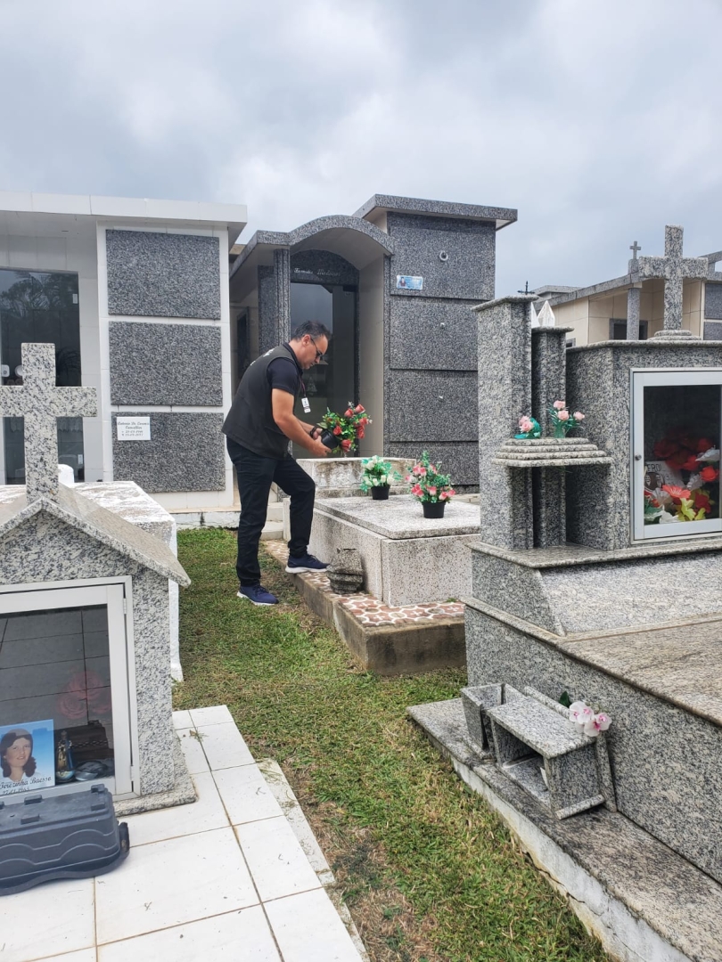 “Qualquer acúmulo de água, mesmo em pequenas quantidades, pode servir de criadouro para o mosquito Aedes aegypti. Contamos com a colaboração da população para que evite deixar vasos ou recipientes que possam reter água nos cemitérios. Além de respeitar a memória de quem já partiu, também devemos cuidar da saúde da comunidade”, orienta o agente de endemias de Urussanga, Vanderlei Figueredo Tavares.