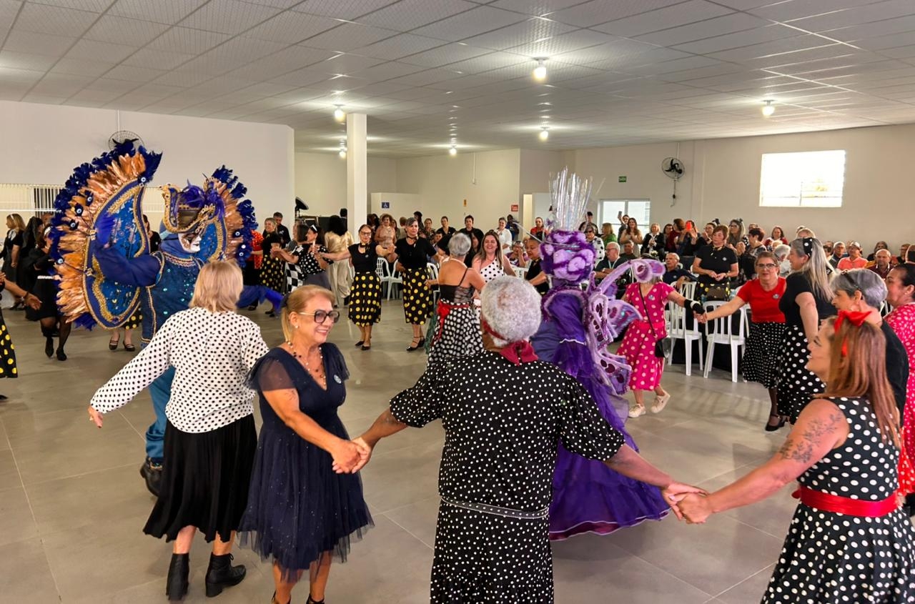A Secretaria de Assistência e Desenvolvimento Social do Balneário Rincão, realizou na tarde desta quinta-feira (30), o Baile dos Anos Dourados. A festa marcou o encerramento do 4º Celebra Idoso, que promoveu atividades esportivas e de integração entre os grupos da Melhor Idade do município durante a semana. O evento contou com apresentações artísticas, homenagens e muita música para mais de 200 pessoas no Centro Comunitário Central.