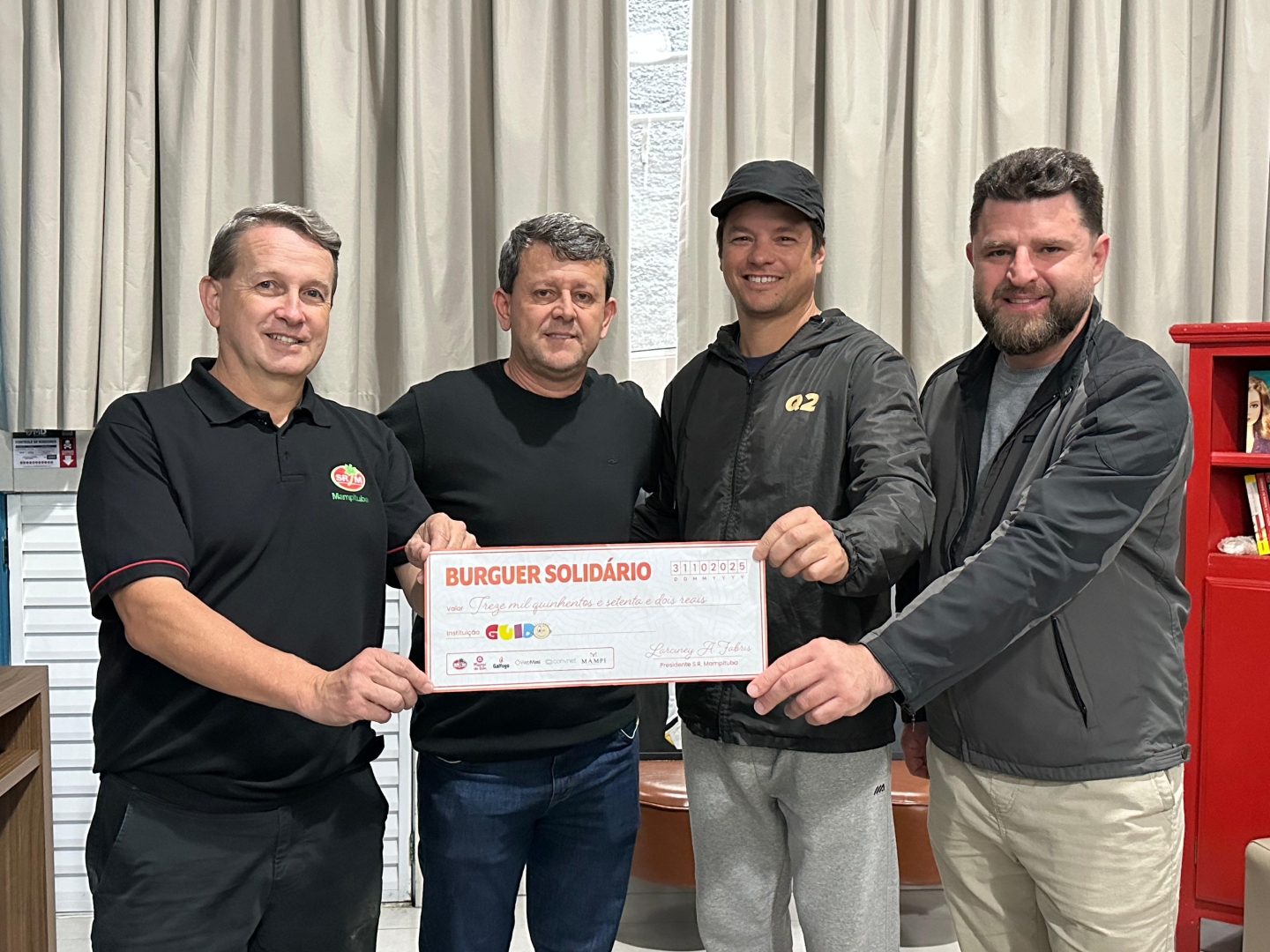 Estiveram reunidos na sede da Casa Guido o presidente da instituição, Rogério Campos, o presidente do Mampituba Larciney Fabris, o idealizador da ação e proprietário do Mampi Gastrobar, Anderson Bressan e o membro da diretoria da Casa Guido, Fabio Bonetti, que também esteve à frente da realização do evento.