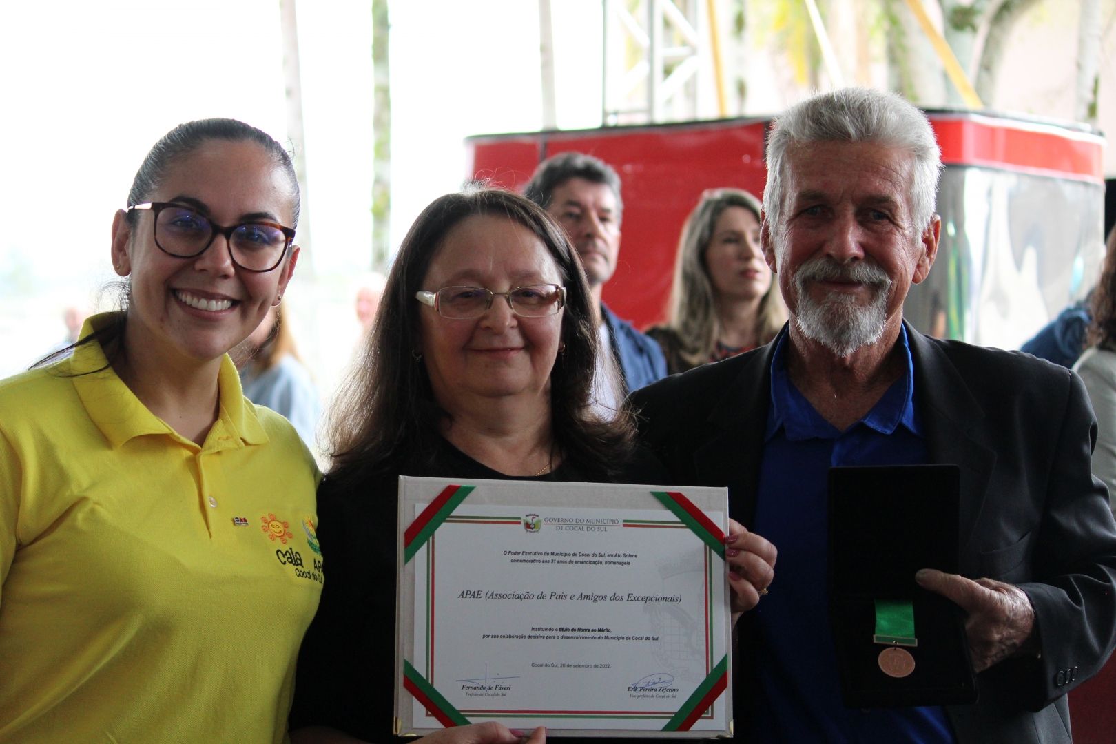 A APAE de Cocal do Sul, foi destaque na IX CocalFest, durante a entrega de honrarias para pessoas físicas e jurídicas, entidades, empresas e agricultores que contribuíram de forma significativa para o município. A premiação foi realizada pela Prefeitura de Cocal do Sul durante a programação de aniversário, na segunda-feira (26) e concedeu à instituição o Título de Honra ao Mérito.