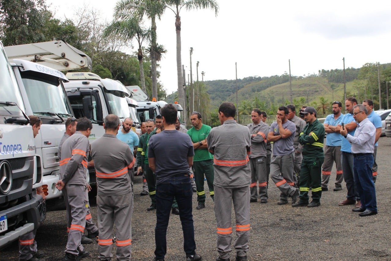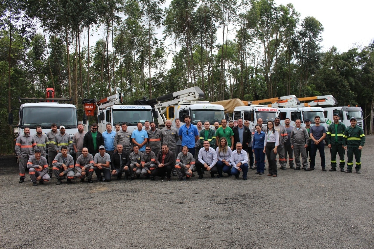 A Cooperativa Energética Cocal - COOPERCOCAL sediou na manhã desta segunda-feira (17/10), o 1º Encontro de Eletricistas de Linha Viva do sistema Fecoerusc. Buscando promover a intercooperação o encontro teve por objetivo oportunizar a troca de conhecimento e soluções implementadas por cada cooperativa. Estiveram presentes as equipes das cooperativas de Braço do Norte, Forquilhinha, Morro da Fumaça, Praia Grande, Içara e Cocal do Sul, as três últimas acompanhadas de seus respectivos presidentes Patrique Alencar, Reginaldo de Jesus (Dedé) e Altair Lorival de Mélo (Belha).