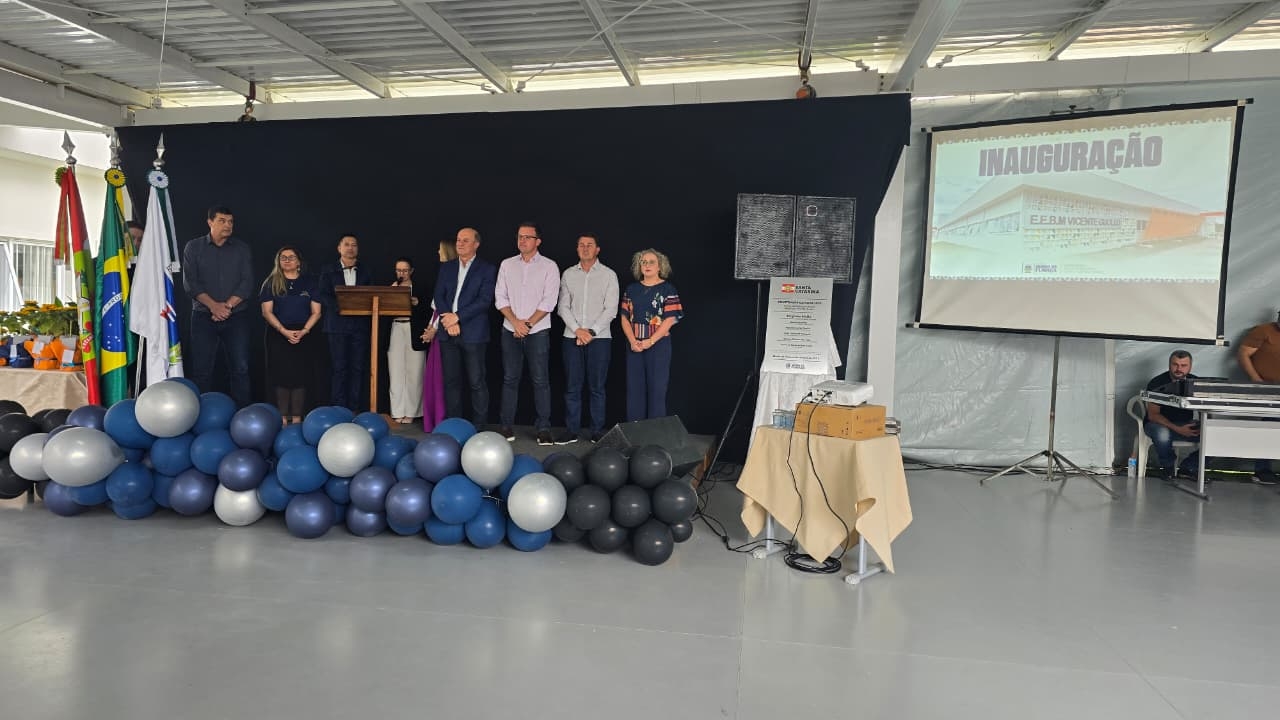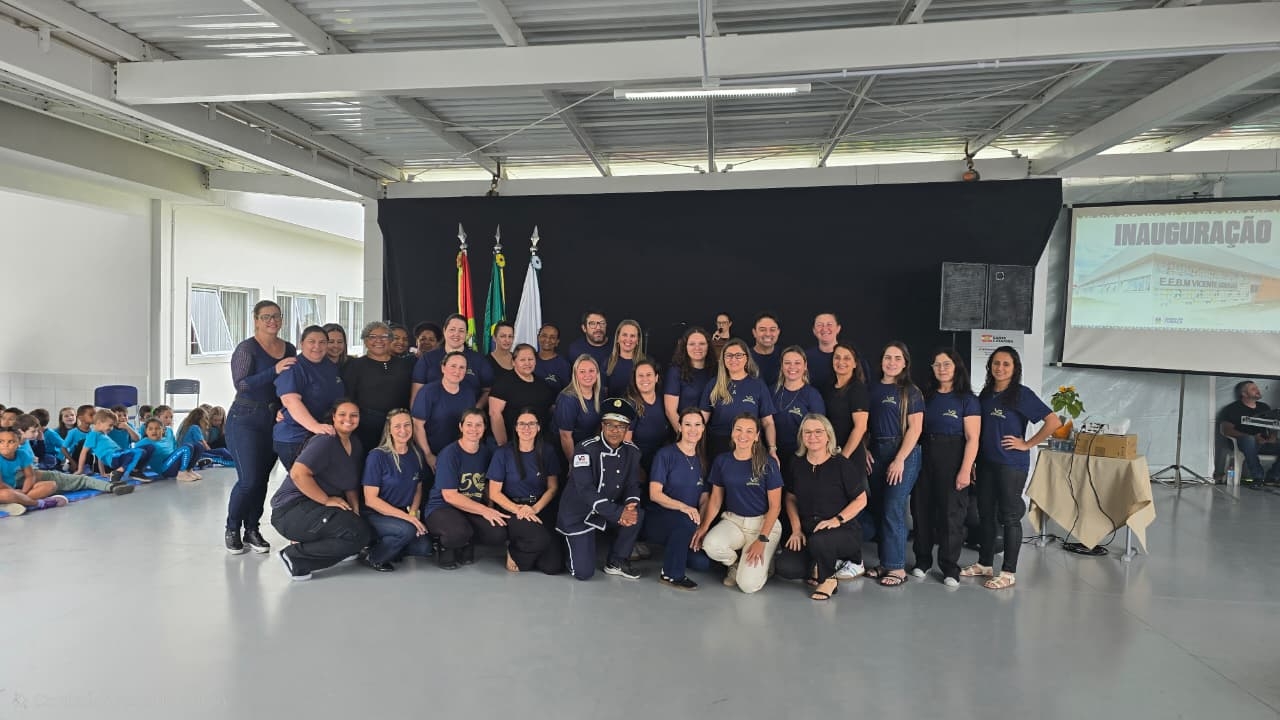O Governo de Morro da Fumaça celebrou, junto com a comunidade do bairro Naspolini, a inauguração das novas instalações da Escola de Educação Básica Municipal Vicente Guollo na tarde desta segunda-feira, 24 de novembro. O novo espaço, moderno, acessível e acolhedor, recebeu investimento de R$ 9 milhões, sendo R$ 5 milhões oriundos de recursos próprios e mais R$ 4 milhões destinados via Governo do Estado, por intermédio do deputado Zé Milton Scheffer. A instituição de ensino recebe, diariamente, mais de 500 alunos e 50 profissionais da Educação.