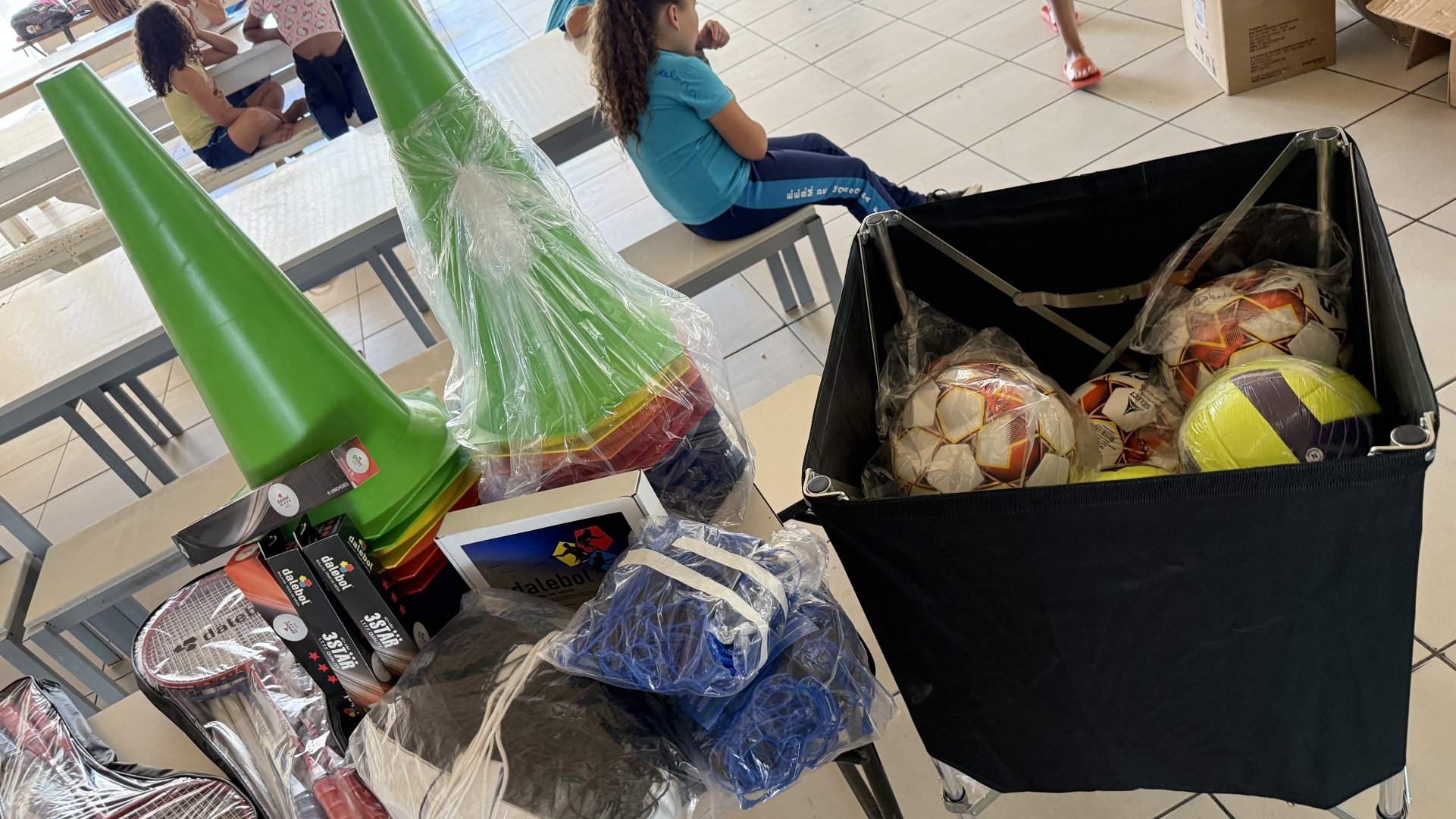 Entre os equipamentos adquiridos estão bolas de futebol, futsal, voleibol, basquete, handebol, de borracha em tamanhos variados, de tênis de mesa e frisbee; raquetes de frescobol, tênis de mesa e badminton; circuitos de psicomotricidade, blocos de montagem, quebra-cabeça, bingo, torre de madeira, pega varetas, cordas de pular, bambolês, skates com kits de proteção e cones coloridos; kit de bolas de bocha, redes de voleibol e de tênis de mesa.