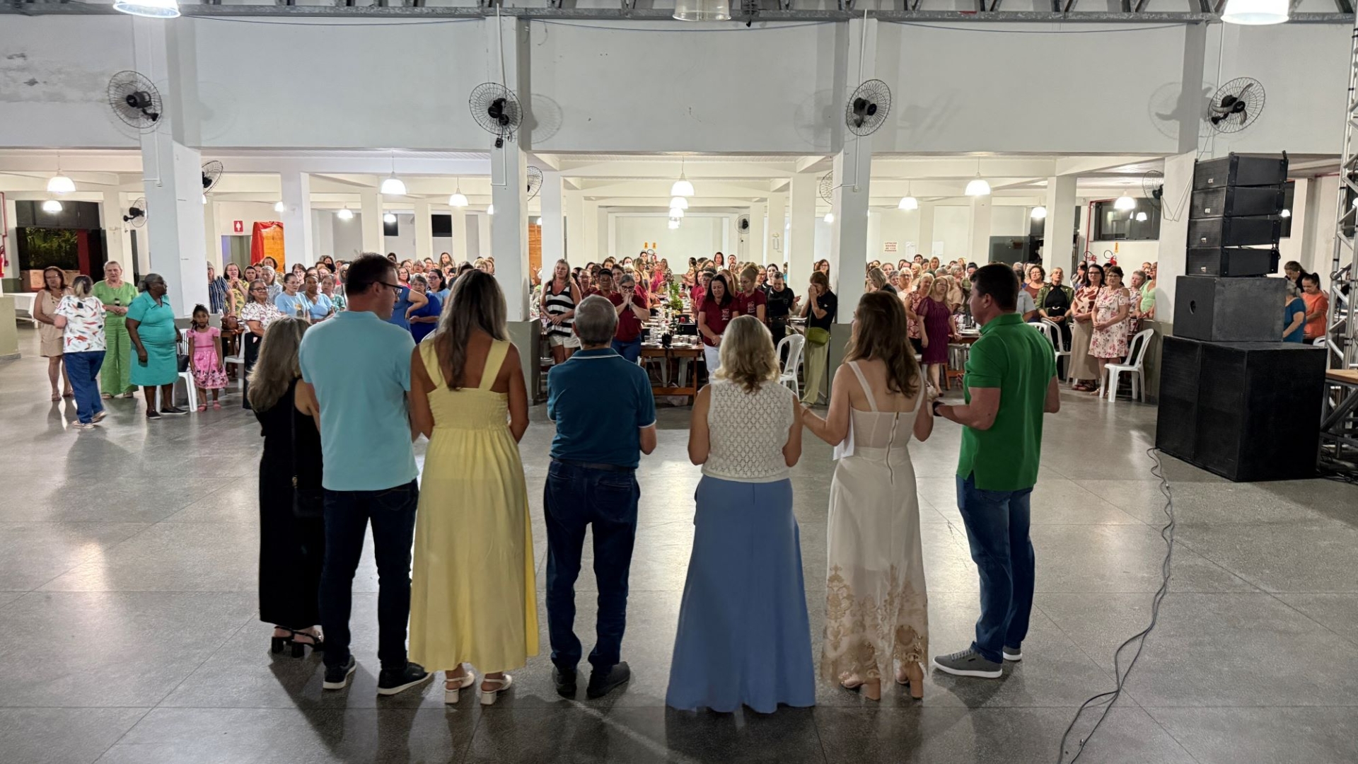 Os 22 grupos de Clubes de Mães de Morro da Fumaça estiveram reunidos na última sexta-feira, 5 de dezembro, para celebrar as atividades promovidas em 2025. A celebração reuniu cerca de 320 mulheres em um encontro marcado pela gratidão, alegria e valorização do trabalho desenvolvido ao longo deste ano. O clima no Salão Paroquial da Igreja Matriz São Roque foi de confraternização e reconhecimento, reafirmando o papel essencial dos Clubes de Mães na mobilização social com ambientes de encontro, troca de experiências e fortalecimento coletivo.