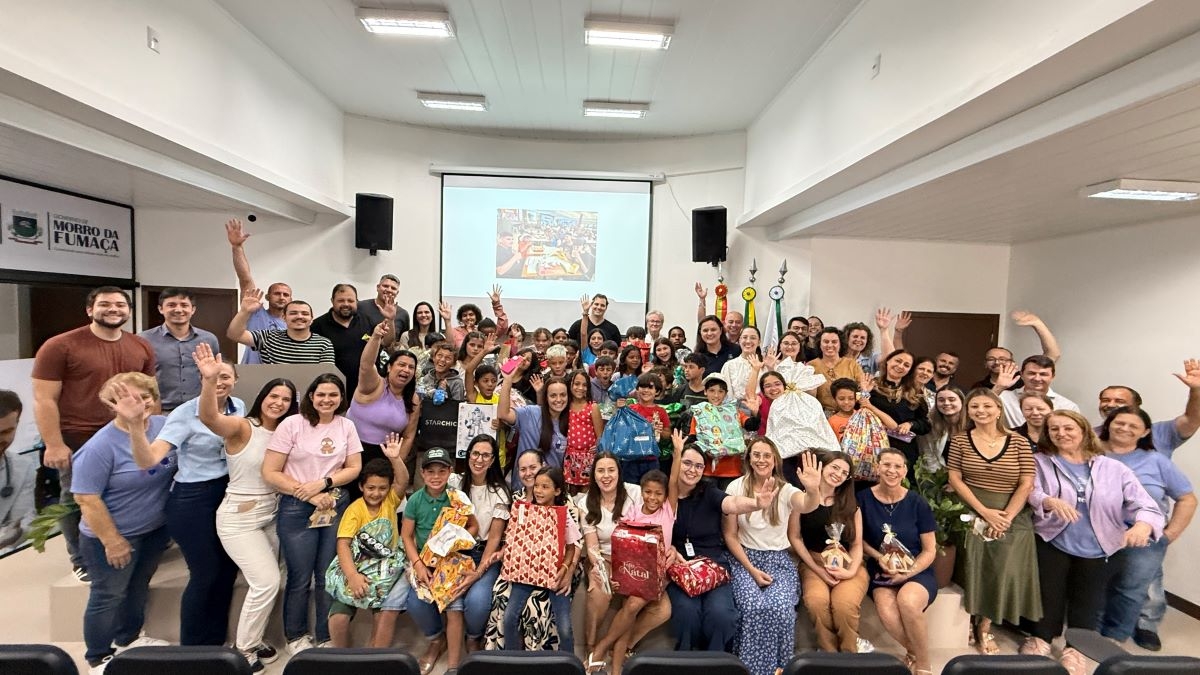 Nesta quarta-feira, 10 de dezembro, o espírito natalino encheu de alegria, embrulhos e laços de fita o Salão de Atos Octávio Naspolini com a entrega de presentes da ação Natal Solidário para as crianças e adolescentes atendidos pelo Serviço de Convivência e Fortalecimento de Vínculos (SCFV) fumacense. Em dois encontros, durante a manhã e à tarde, os padrinhos e madrinhas puderam conhecer e entregar os presentes para seus afilhados e afilhadas, em um momento de celebração, emoção e magia. As 93 cartinhas foram adotadas por servidores do Governo Municipal, da Polícia Civil e da Câmara de Vereadores do município.