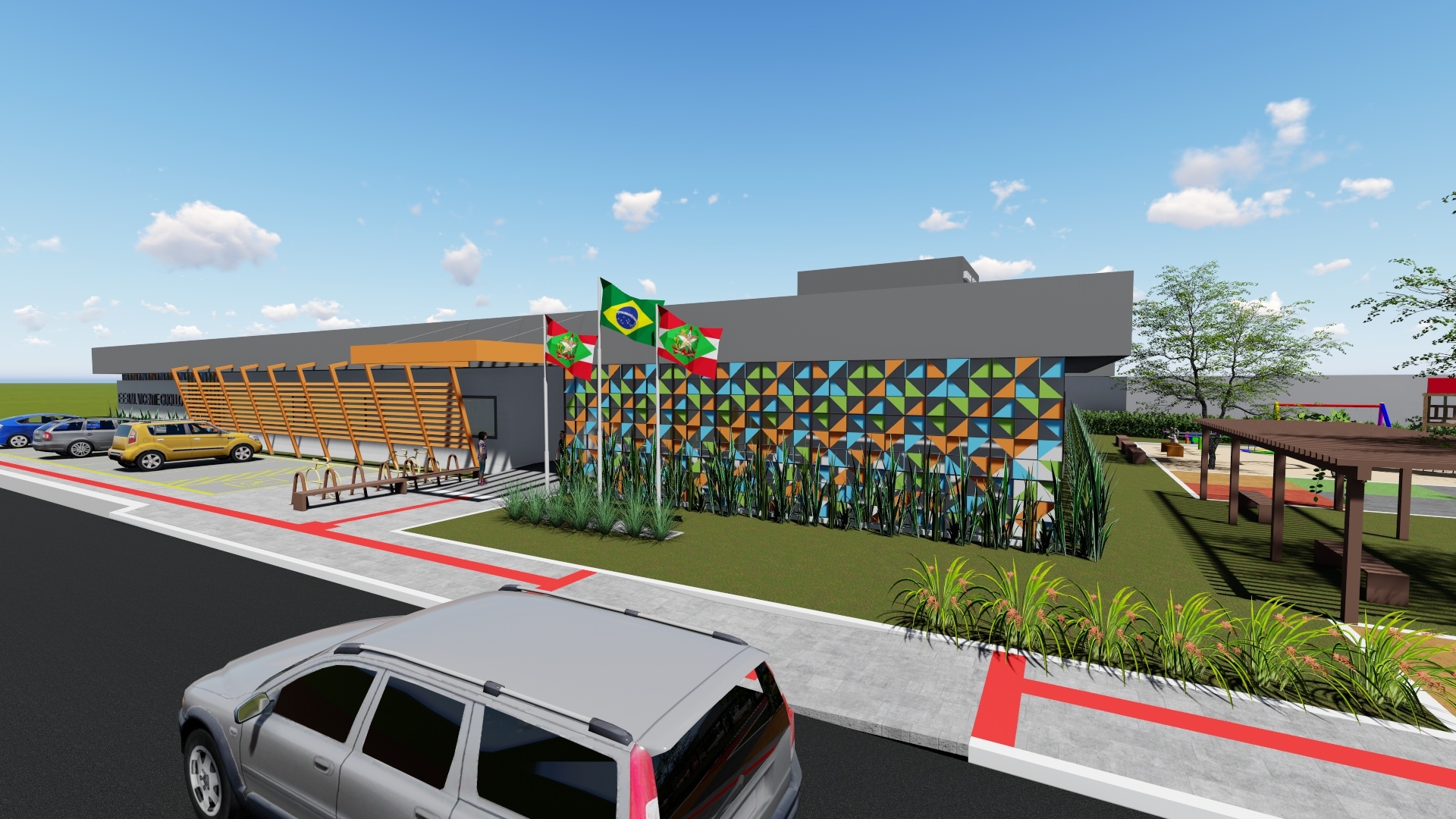 No total serão mais de 2,6 mil metros quadrados construídos que, além da escola, incluem espaços públicos como praça e estacionamento. O projeto também contempla a construção de biblioteca, sala de artes, laboratório de ciências e geografia, sala de informática, sala para atendimento educacional especializado e três salas para Educação Infantil.