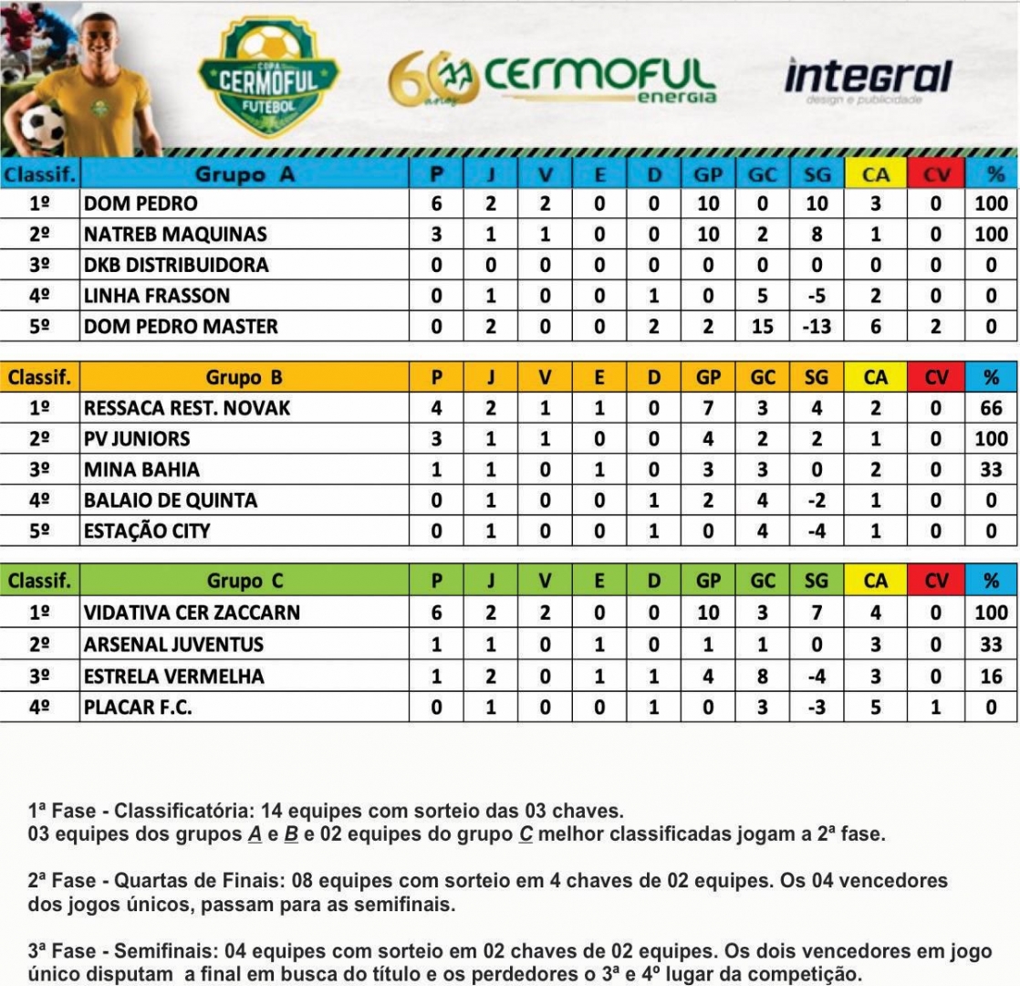 Em uma noite inspirada, os atacantes do Vidativa Cerâmica Zaccaron mostraram seu talento e marcaram sete vezes, garantindo a segunda vitória da equipe e a liderança do grupo C da Copa Cermoful de Futebol Suíço - Taça 60 Anos. Com gols de Cleiton, Guilherme, Lucas, Gustavo, e Mayke, além de dois gols de Willian, a equipe saiu vitoriosa. O Estrela Vermelha marcou três vezes, com gols de André, Kayuri e Murilo.