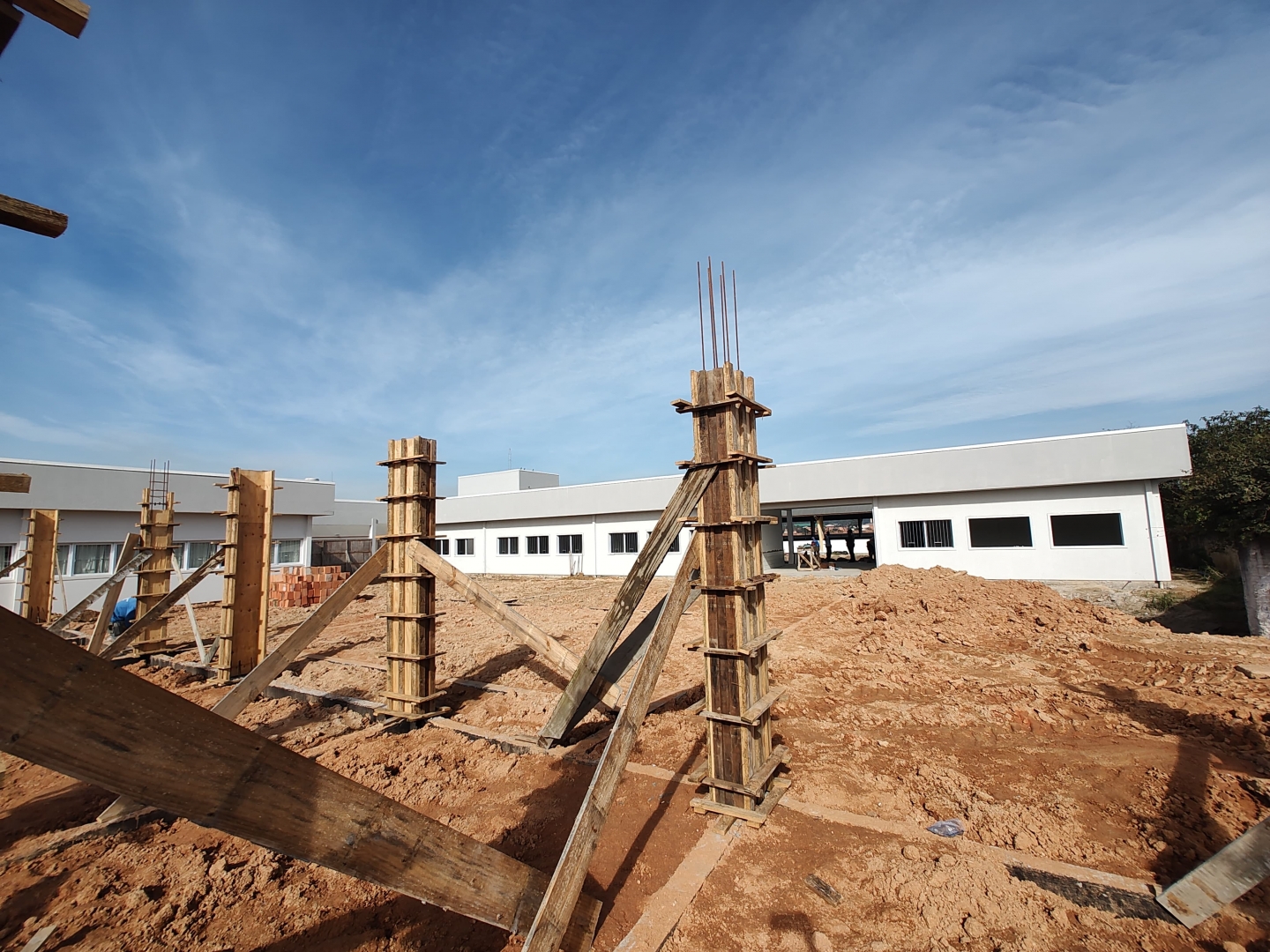 “Estamos avançando conforme o clima nos favorece. A segunda edificação, onde será alocado a sala de artes, a biblioteca e três salas de educação infantil e sanitários está praticamente concluída, faltando a finalização da parte elétrica e acabamentos. Com isso, conseguimos avançar para as alas três e quatro, que já conta com a parte de fundação e aterramento concluída”, detalha o secretário de Infraestrutura, Natan Felipe Souza.