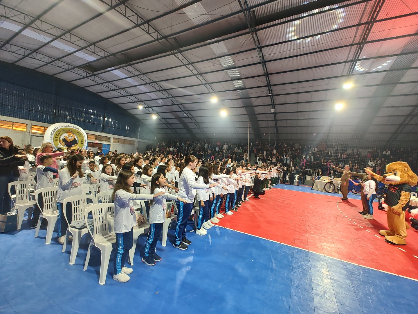O Ginásio de Esportes Jorge Silva, na noite desta terça-feira, 02 de julho, foi palco de mais uma formatura do Programa Educacional de Resistência às Drogas e à Violência (Proerd), de Morro da Fumaça. O evento contou com a presença dos professores do projeto, de autoridades locais, da comunidade escolar e do mascote Daren, que fez a alegria da garotada.