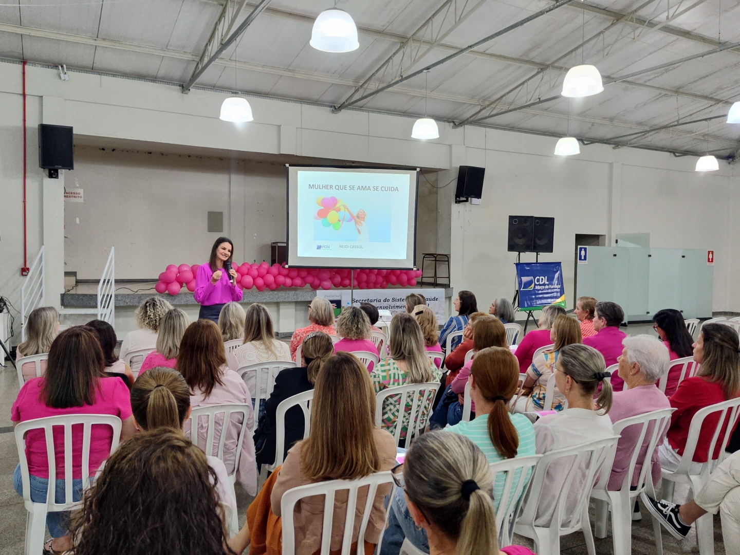 O evento também contou com a presença da secretária de Saúde, Marijane Felippe, da primeira-dama Laine Coral e da segunda-dama, Roberta Ghise. Além da palestra, as participantes também foram agraciadas com um coffee break e com sorteio de brindes, doados por estabelecimentos da cidade.