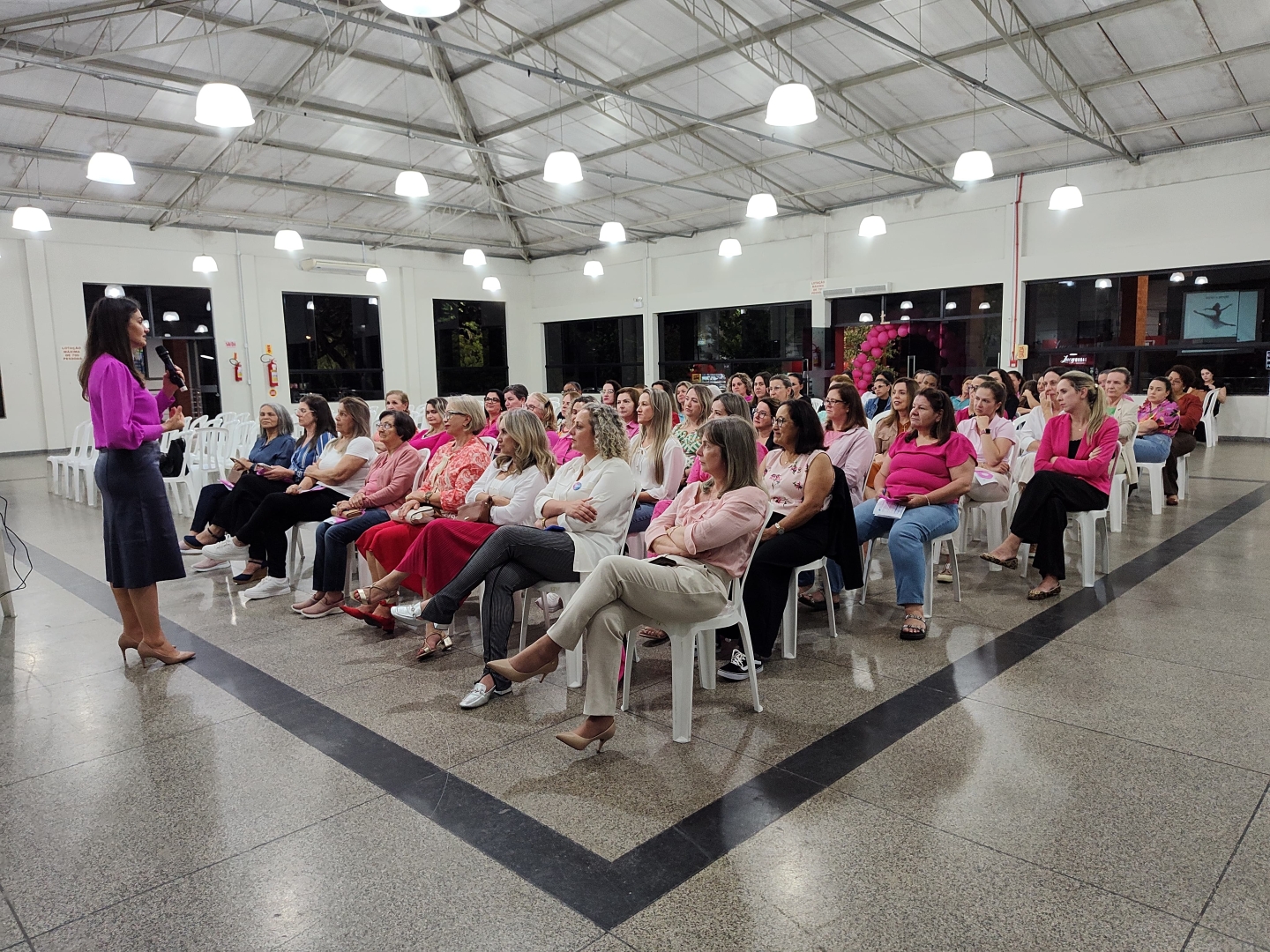 Com a presença de aproximadamente 100 mulheres, a palestra "Mulher que se ama, se cuida", conduzida pela inspiradora Neidi Cassol, realizada na noite desta quarta-feira, 16, garantiu riso, emoção e muita reflexão entre as participantes.