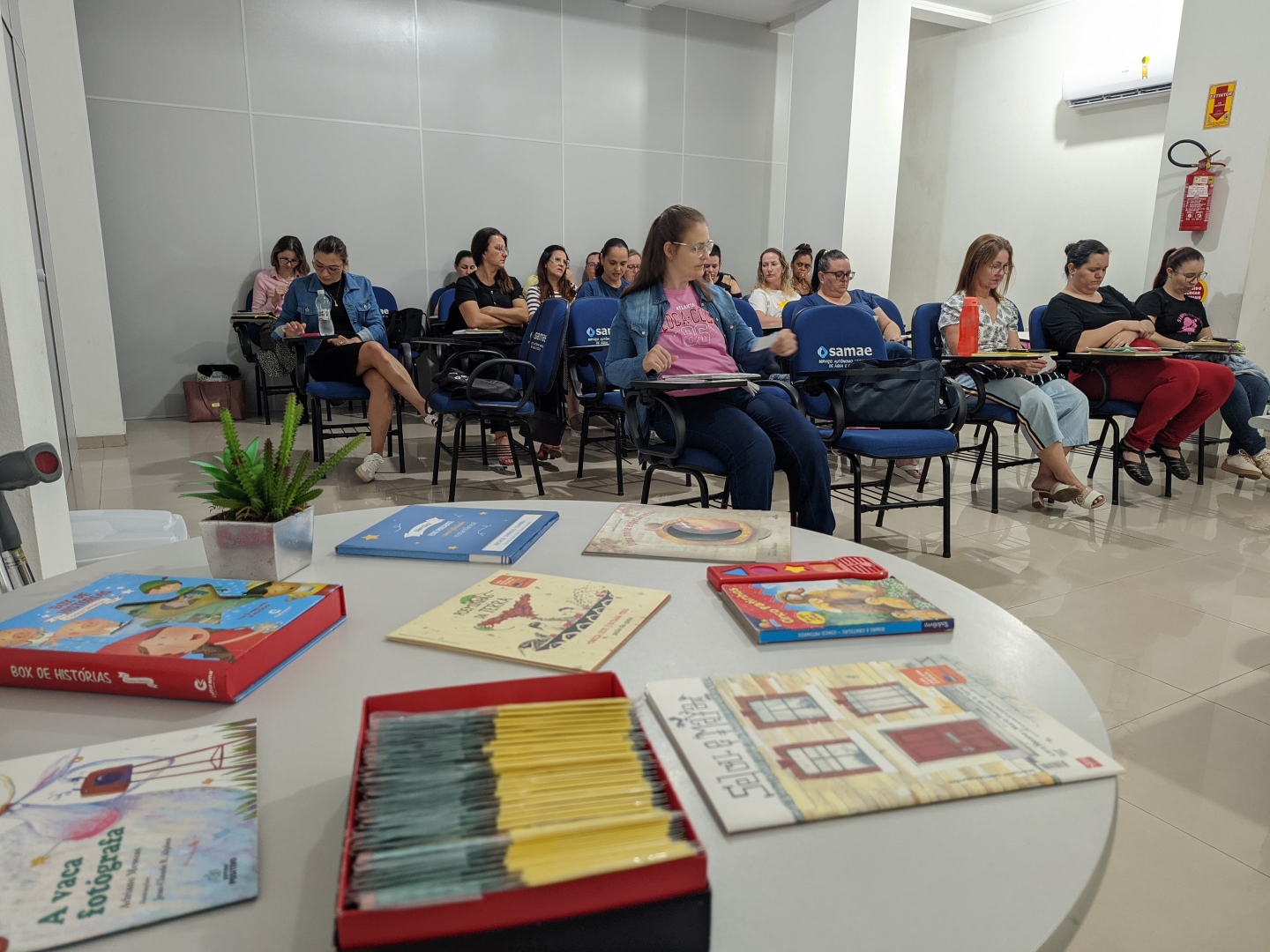 Com o objetivo de aprimorar cada vez mais a metodologia de ensino voltada a leitura e a escrita como agente de cultura dentro das salas de aula, 28 professoras da Rede Municipal de Ensino fumacense participaram, nesta sexta-feira, 18, no auditório do Serviço Municipal de Água e Esgoto de Morro da Fumaça (Samae), do segundo encontro de estudos do projeto Leitura e Escrita na Educação Infantil (LEEI), idealizado pelo Ministério da Educação (MEC).