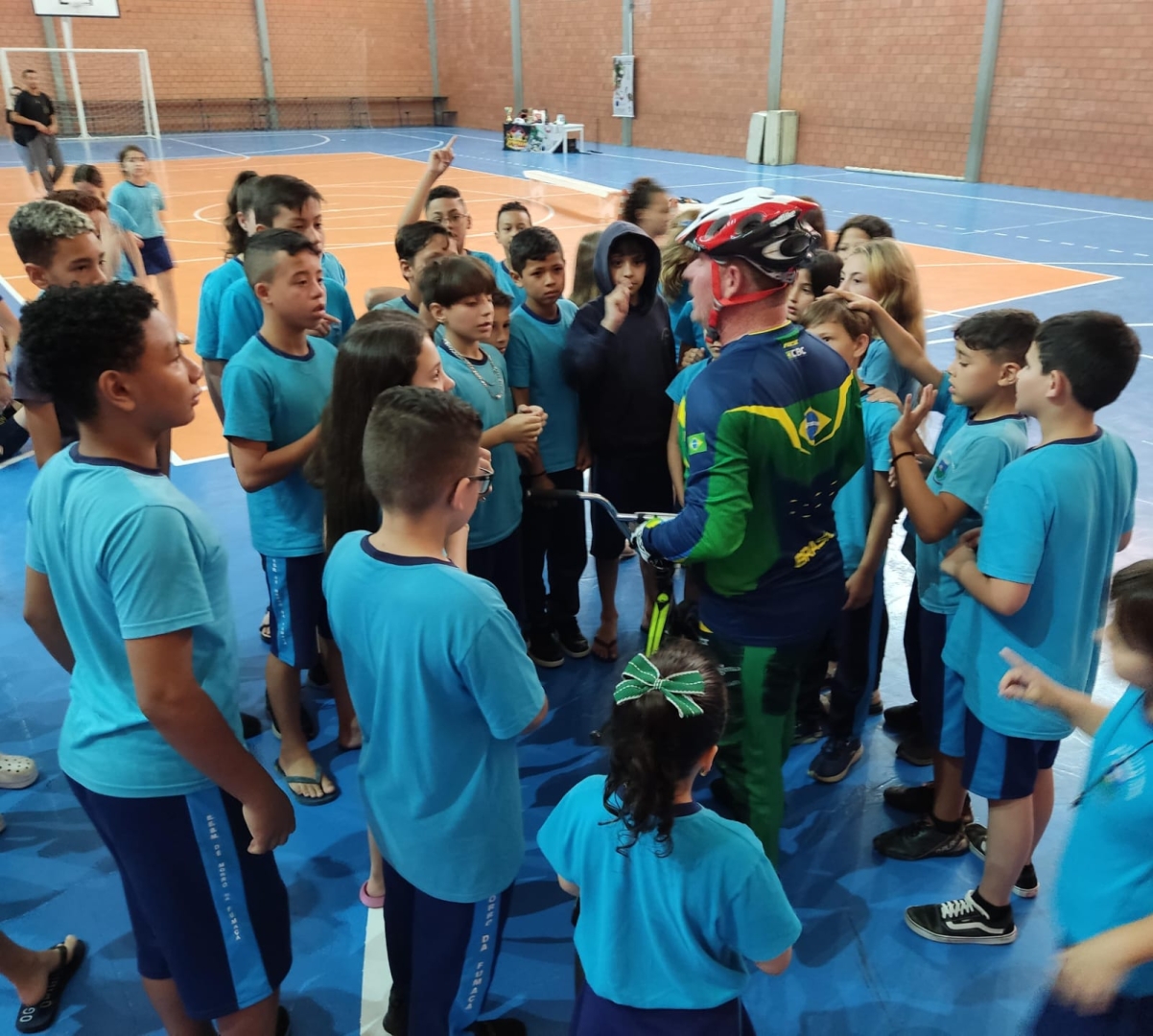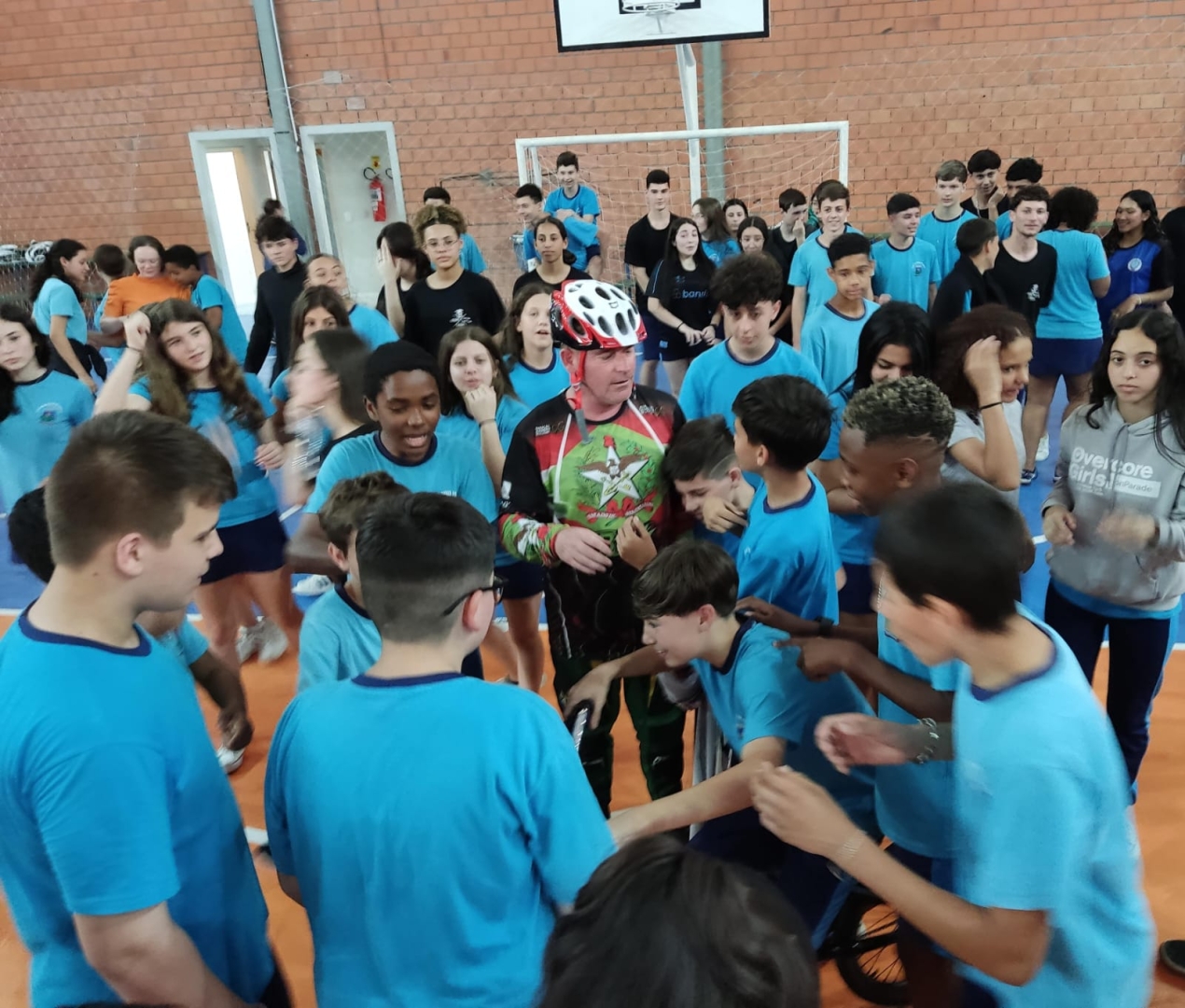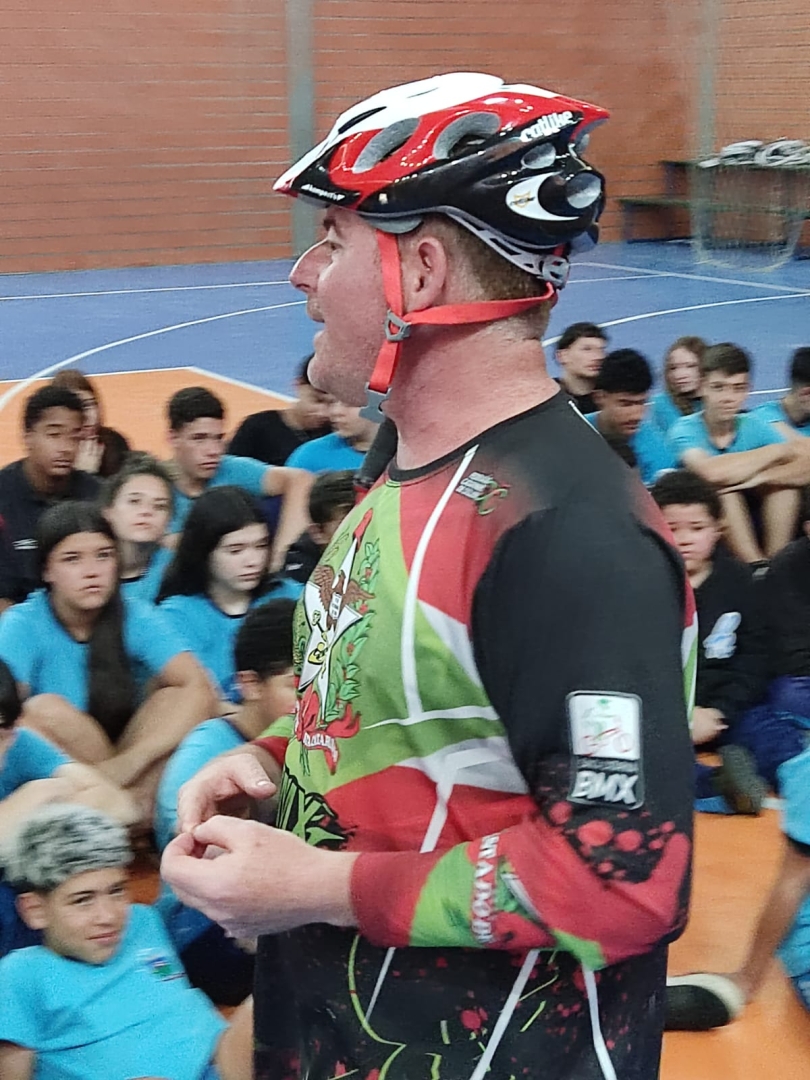 Marco Aurélio “Tocha”, piloto de BMX e palestrante motivacional. esteve na Escola Municipal Pietro Maccari, em Morro da Fumaça. Próximos desafios acontecem na semana que vem.