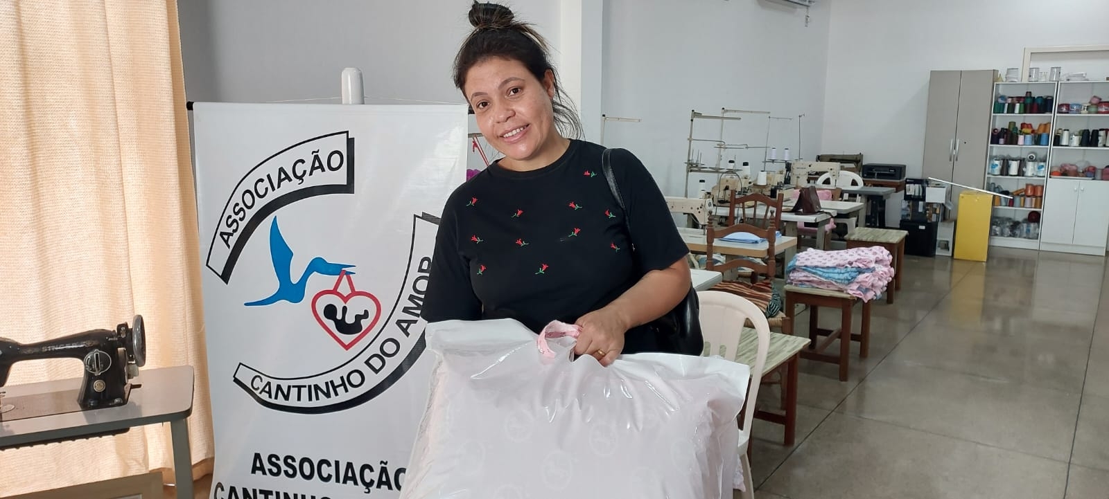 Na terceira gestação, Jéssica da Silva José, moradora da Linha Serafin, reforça a importância da entidade há 18 anos. “Eu já ganhei enxoval do meu primeiro filho, que hoje está com 18 anos de idade, da segunda filha que hoje está com 12 anos, e agora outra menina. Ainda tenho o edredom guardado deles. Esse trabalho do Cantinho é muito importante para ajudar a gente que não tem condições de comprar todo o enxoval”, agradece Jéssica.