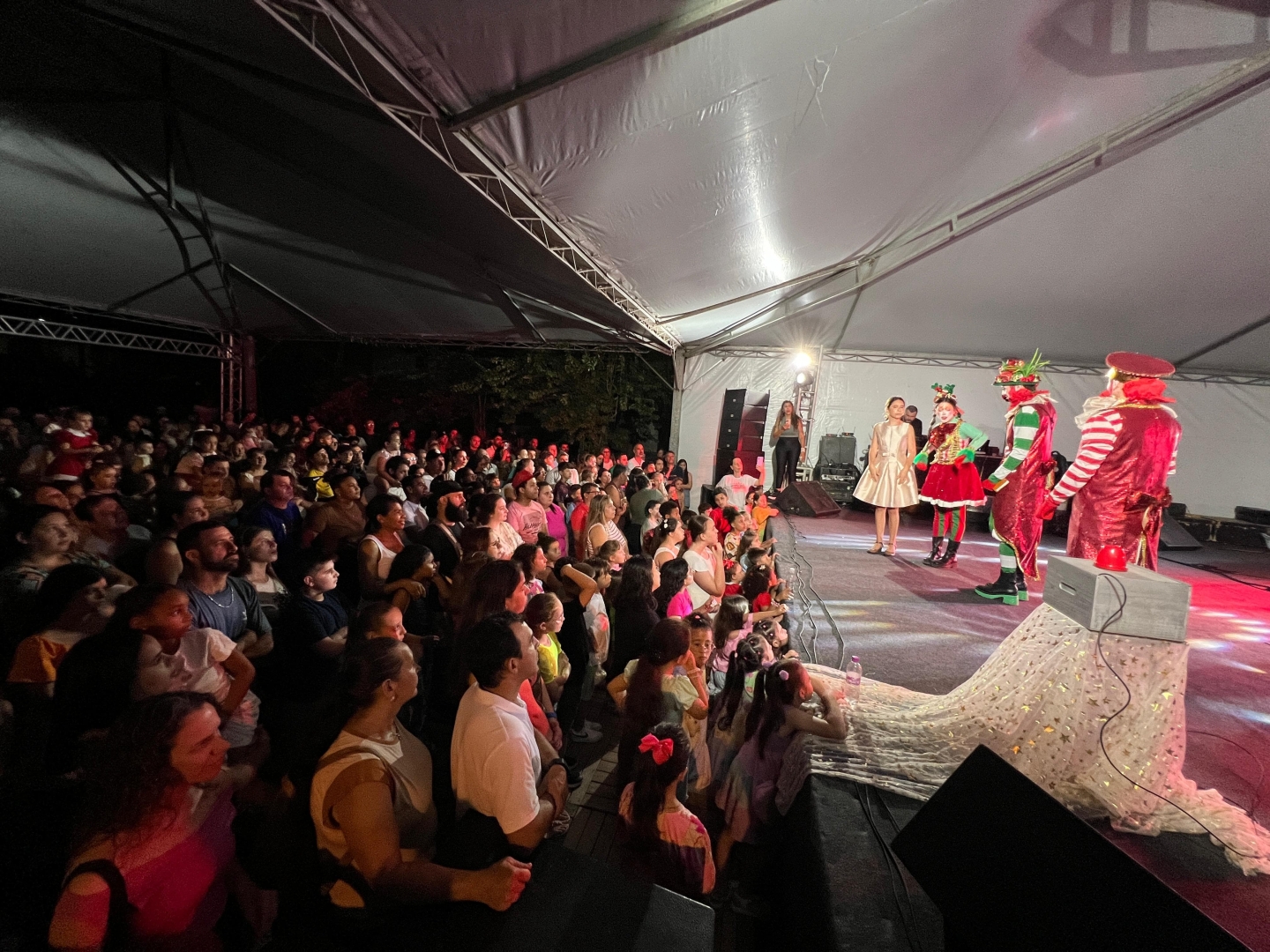 A tradicional noite de abertura da Vila Natalina de Morro da Fumaça, realizada na noite deste domingo, dia 17, proporcionou momentos de emoção e muita alegria aos participantes do evento. Neste ano, o cronograma teve início na Praça da Igreja Matriz São Roque, com a apresentação do Coral Criança Feliz, seguida da performance da Cia Fantasy, que escoltou o veículo do Papai Noel e alegrou a caminhada pela Rua 20 de Maio até o palco principal.