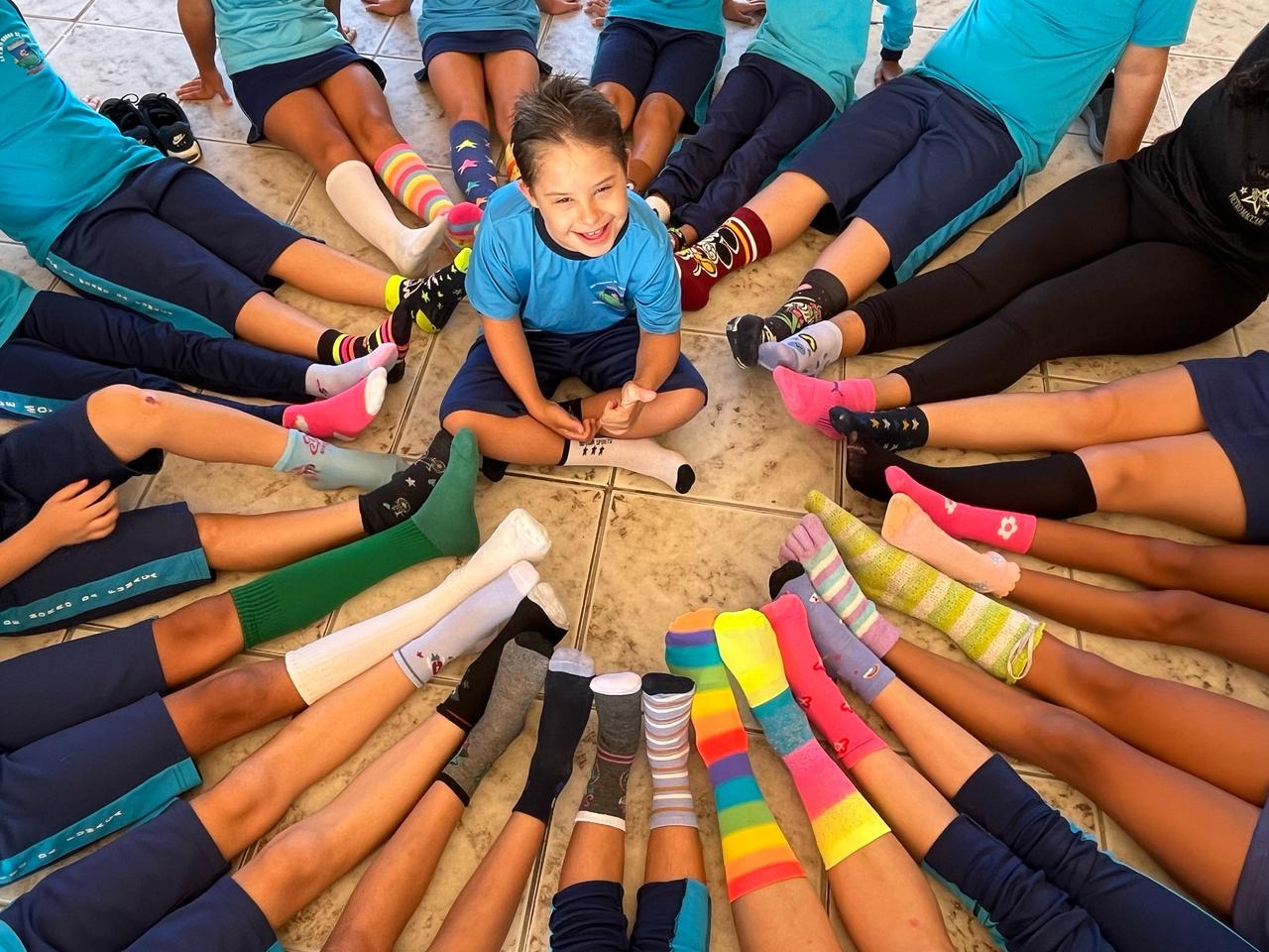 Se a transformação começa pela educação, a turma do 4º ano matutino da Escola Pietro Maccari deu exemplo do que pode ser um futuro promissor. Para marcar o Dia Internacional da Síndrome de Down, que acontece nesta sexta-feira, 21 de março, os alunos celebraram a data na última quarta-feira, 19, quando todos foram convidados a irem com meias trocadas, especialmente coloridas e extravagantes, para aumentar a conscientização sobre a Síndrome de Down e celebrar a diversidade. O fato se tornou ainda mais marcante pela presença do pequeno Danilo, aluno com Síndrome de Down, que também veio com suas meias trocadas e pôde celebrar com seus colegas.