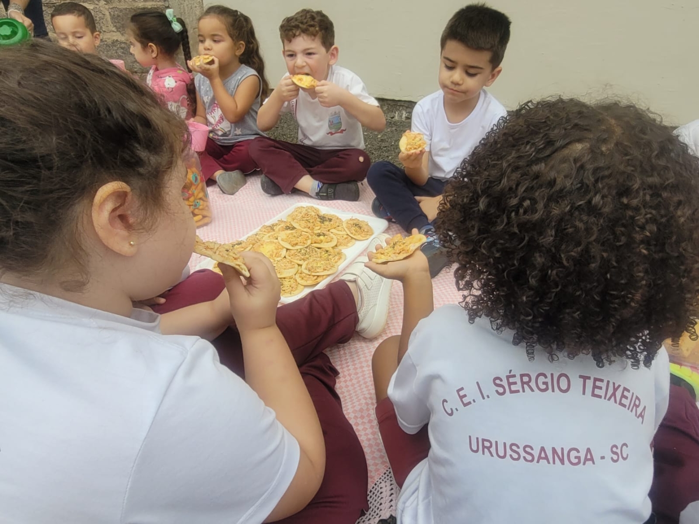 No CEI Sérgio Teixeira, as crianças vivenciaram um momento único nesta segunda-feira, dia 19, de produção culinária e muito aprendizado. Com a ajuda dos professores, elas colocaram a mão na massa para produzir diversas pizzas. A aventura gastronômica foi acompanhada pelos idealizadores do Giardinetto Ristorante, restaurante que se inspira na tradição italiana, o chef Maicol da Rosa Torret e a maître de sala Andreza Frasseto.