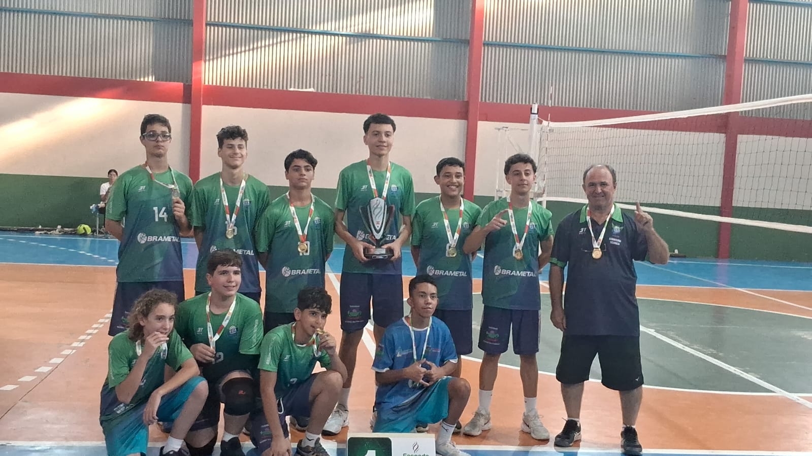 Equipe da Escola Pietro Maccari venceu cinco adversários e perdeu apenas um set; estudante também se classificou no badminton