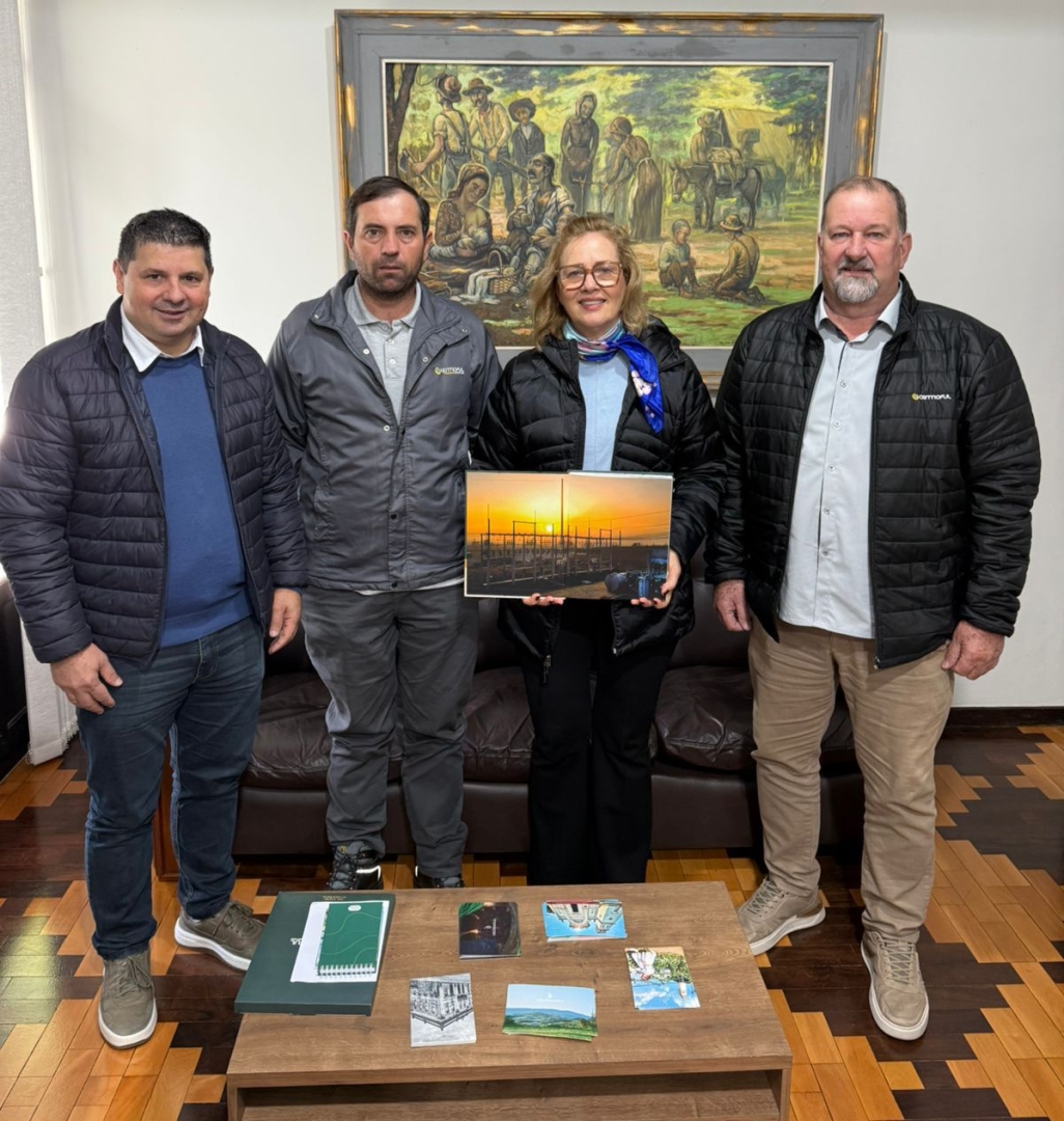 A Cermoful Energia apresentou, na manhã de sexta-feira (13), à prefeita de Urussanga, Stela Talamini, o projeto de ampliação da rede elétrica que visa atender ao crescimento das áreas industriais da região. O encontro contou com a presença do presidente da cooperativa, Rudy Recco, e do engenheiro eletricista Samuel Sartor.