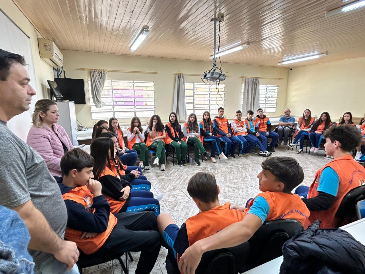Nesta semana, a Escola Municipal Pietro Maccari sediou o encontro dos estudantes que integram o Núcleo Escolar de Proteção e Defesa Civil (Nepdec), do Programa Defesa Civil na Escola, desenvolvido em Morro da Fumaça, em uma parceria da Secretaria de Educação com a Coordenadoria Municipal de Proteção e Defesa Civil. Participaram da reunião alunos dos anos finais do ensino fundamental das escolas Maurina de Souza Patrício, Olívio Recco, Pietro Maccari, Vicente Guollo e do Colégio Interação, da rede privada de ensino, para definirem as ações que serão executadas pelo grupo ao longo do segundo semestre letivo de 2025. O encontro aconteceu na terça-feira, 17 de junho.