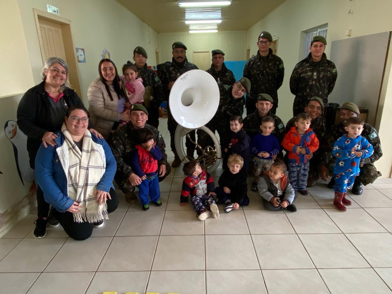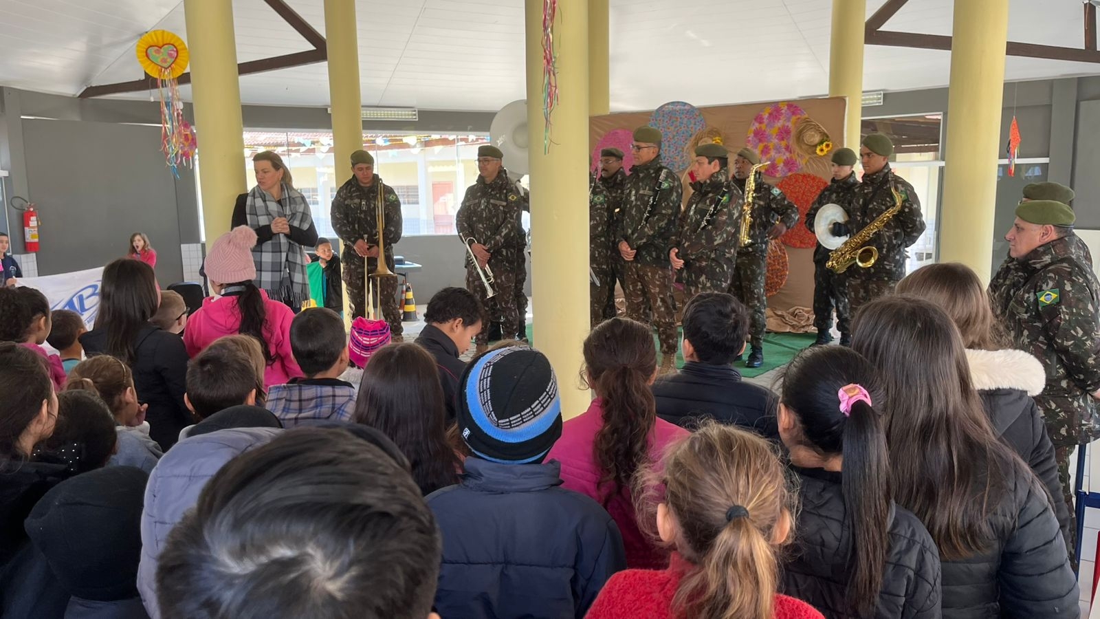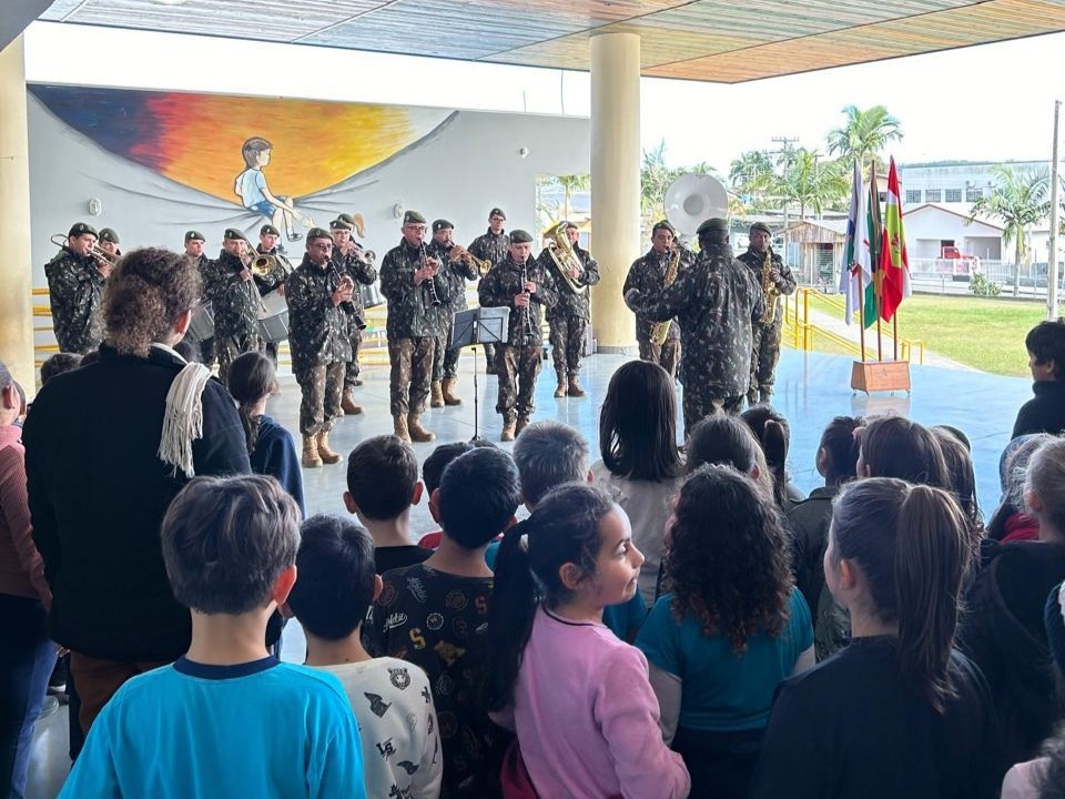 Em uma iniciativa de integração da Secretaria de Educação de Morro da Fumaça e do Exército Brasileiro, o 28º Grupo de Artilharia de Campanha (28º GAC) está realizando apresentações da banda de música do quartel nas escolas infantis e Centros de Educação Infantil municipais fumacenses. O objetivo principal é aproximar o Exército Brasileiro do público jovem, incentivando valores de civismo, patriotismo e respeito às tradições nacionais. Iniciadas na última semana, as apresentações já aconteceram nas escolas Vicente Guollo, Agenor Bortolatto, Olívio Recco, Maurina de Souza Patrício, Pietro Maccari, Zuleima Búrigo Guglielmi, Biázio Maragno e no CEI Luiz Casagrande.