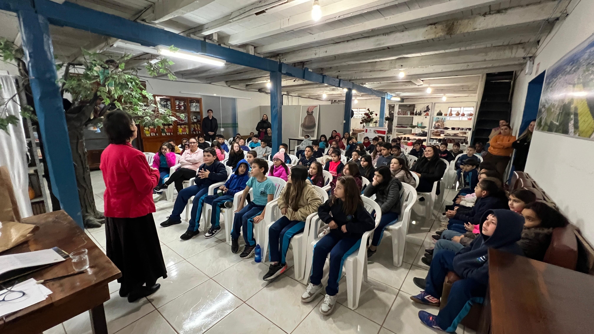 Na última semana, o Centro Cultural Silvio Cechinel recebeu estudantes dos 3ºs anos da rede pública municipal de ensino de Morro da Fumaça para as apresentações do projeto Contos no Museu – “A Intenção da Argila”, de Marinelza Maccari. As encenações aconteceram nos dias 6 e 8 de agosto, reunindo o público infantil em uma experiência que integrou arte, memória e identidade fumacense. Baseada no poema “A Intenção da Argila”, de Idésio de Oliveira, a peça retrata a história de Morro da Fumaça a partir da vida de uma moradora local com o objetivo de aproximar os estudantes da história do município e promover o acesso à cultura de forma educativa.