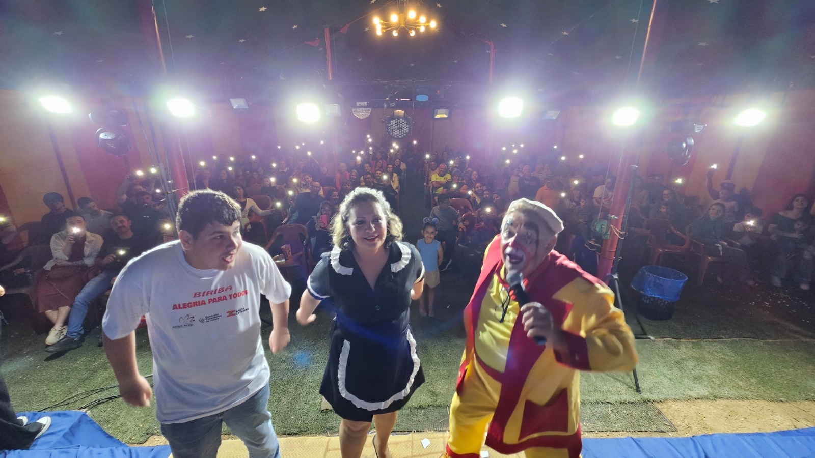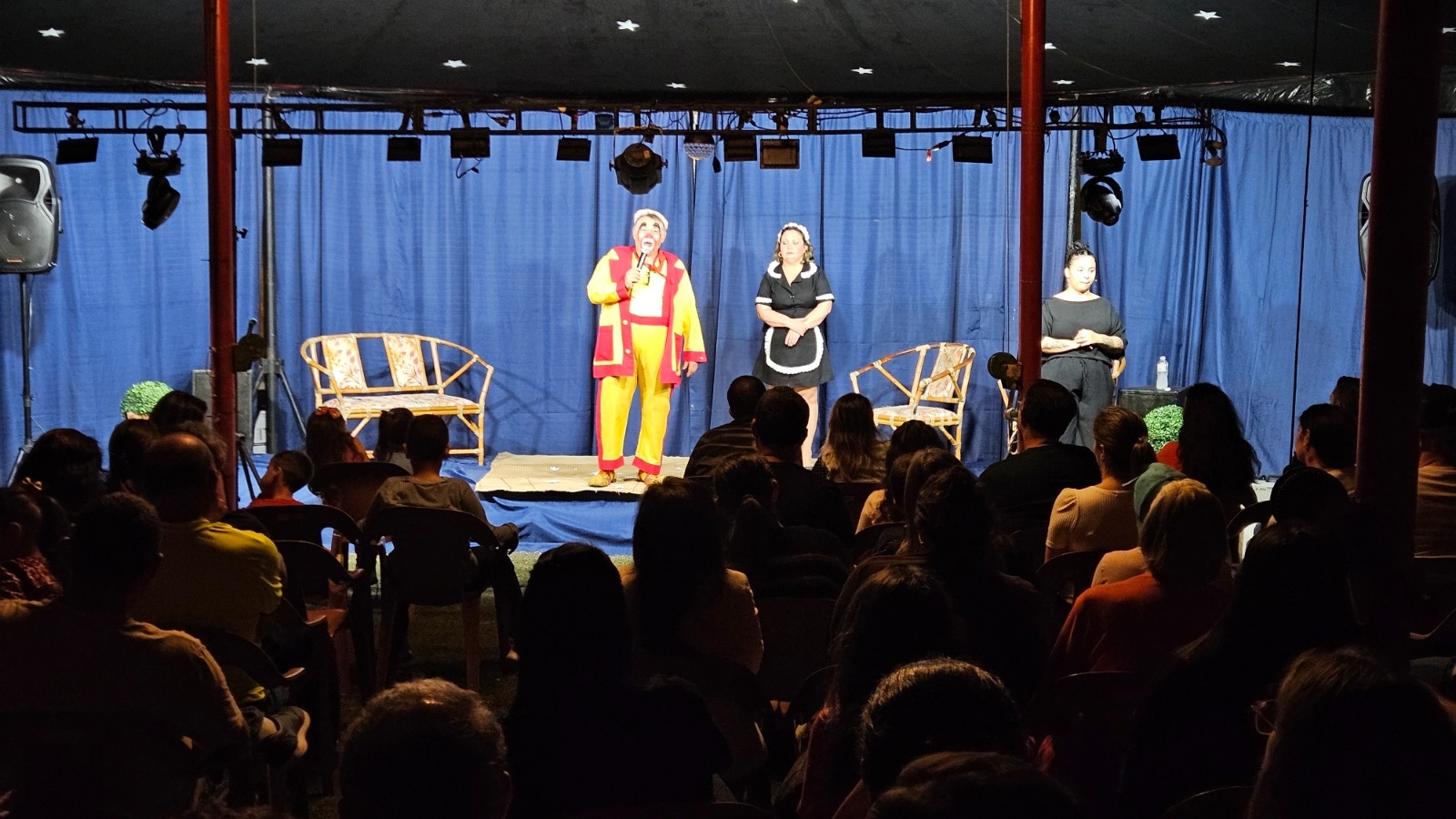 A estreia do Circo de Teatro do Biriba em Morro da Fumaça, na noite desta quarta-feira (20), foi marcada por um grande público que lotou a lona montada no Bairro Esperança. Muitas famílias se reuniram para assistir ao espetáculo “Biriba – O Namorado da Empregada”, que arrancou risadas e conquistou a plateia do início ao fim.
