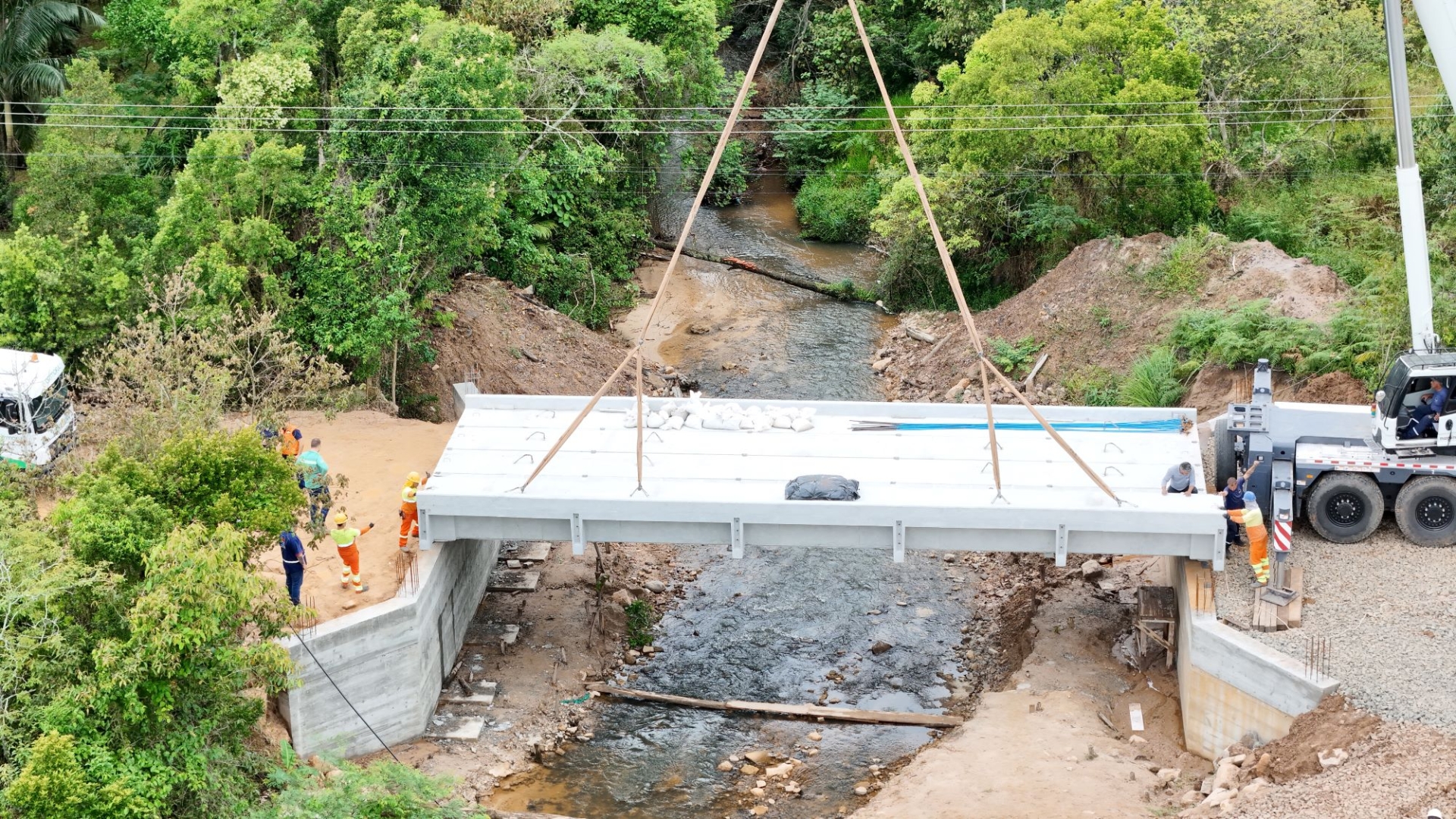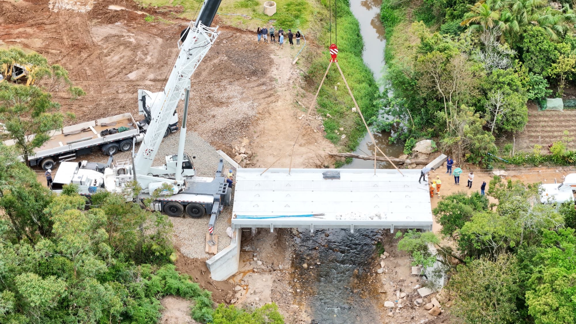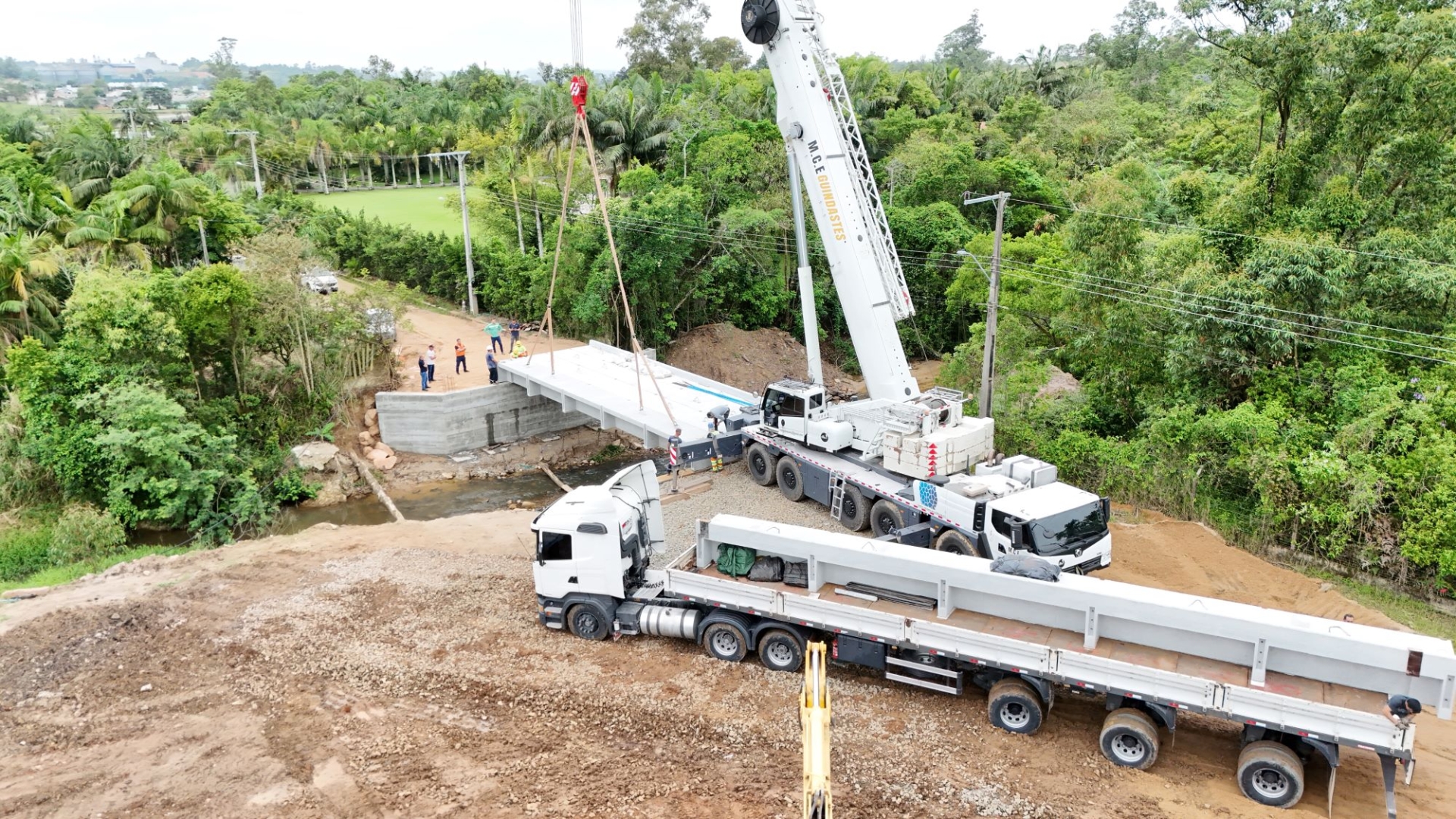 Os Governos de Morro da Fumaça e Içara, nesta terça-feira, 28 de novembro, deram início a mais uma etapa da obra da nova ponte sobre o Rio Ronco D’água com a instalação do kit de transposição que irá conectar os municípios. A estrutura em concreto foi entregue pela Secretaria de Estado da Proteção e Defesa Civil de Santa Catarina, após os municípios viabilizarem a construção das novas cabeceiras.